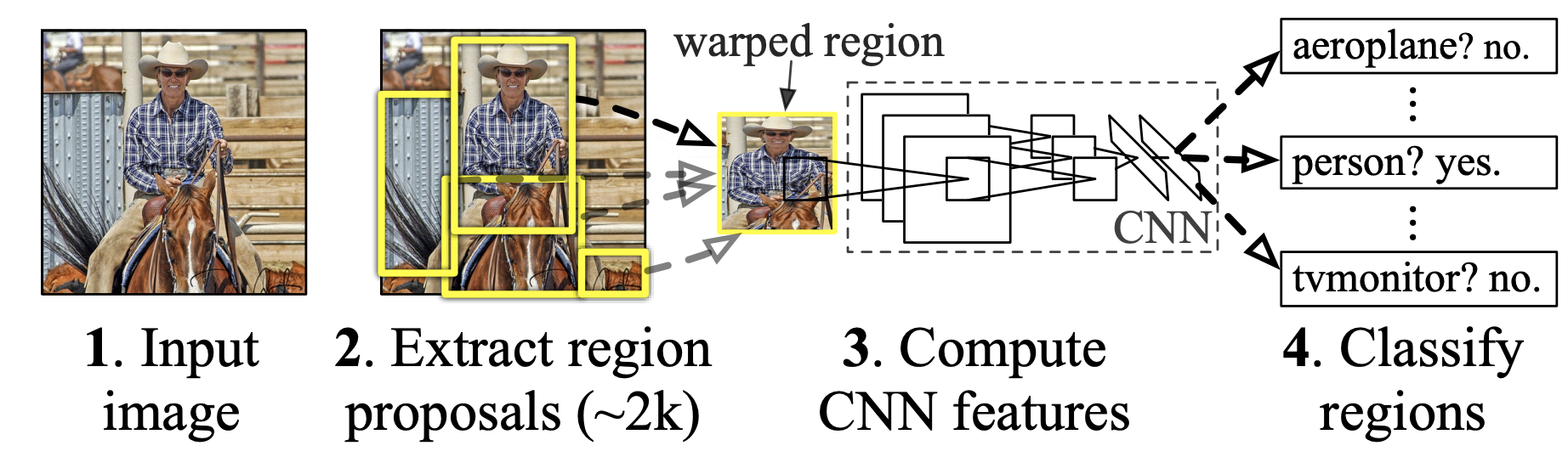 The R-CNN family, including R-CNN, Fast R-CNN, and Faster R-CNN, represents a class of two-stage detectors, where the model first generates region proposals and then classifies and refines them.